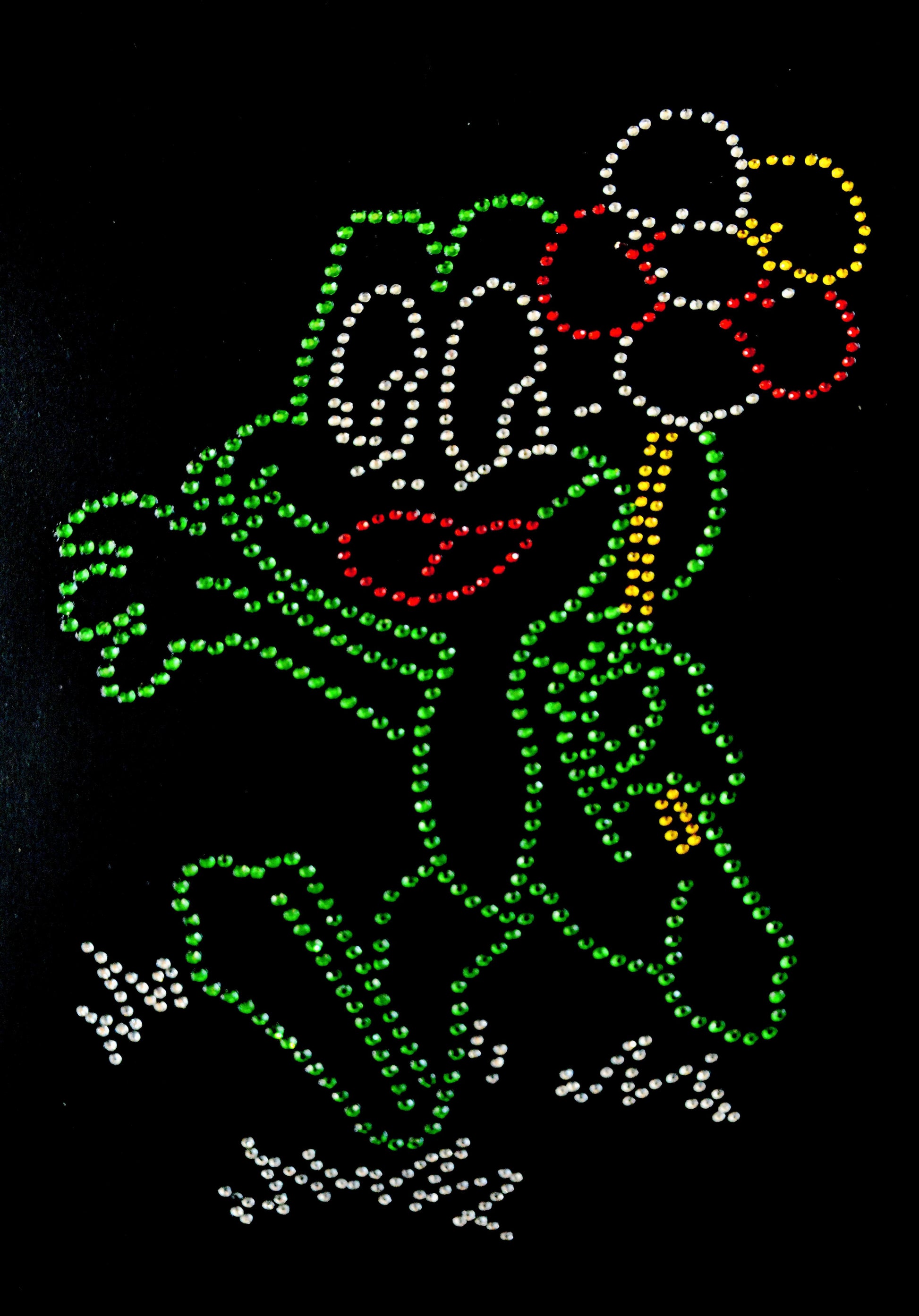 Breng vreugde en flair in uw kleding en accessoires met de unieke Oeteldonk strass applicatie kikker met bloem parasolletje. Deze prachtige applicatie is niet alleen een opvallende toevoeging aan elke outfit, maar ook een symbool van de levendige Oeteldonkse cultuur.