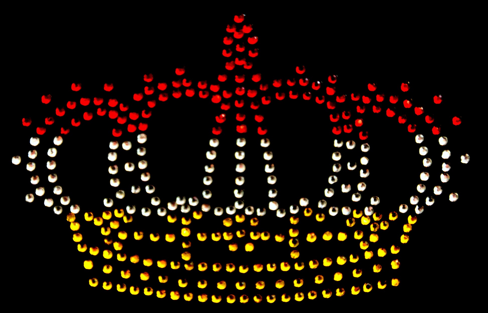 Oeteldonk strass strijkembleem kroontje luxe klein 9,5cmx6cm rood, wit, geel