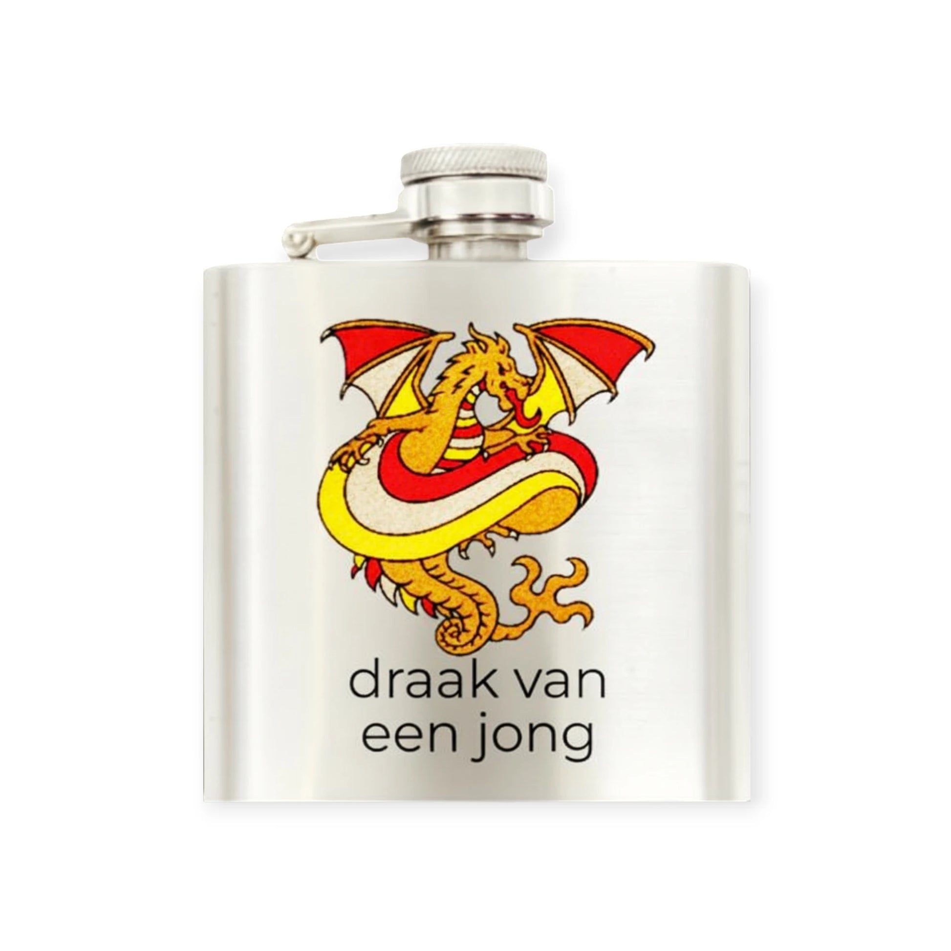 Onze heupfles is gemaakt van stevig RVS en ligt heerlijk in de hand. Ideaal voor een slokje onderweg, voor in de jaszak of als verrassend cadeau voor vrienden, familie of mede-carnavalsvierders.