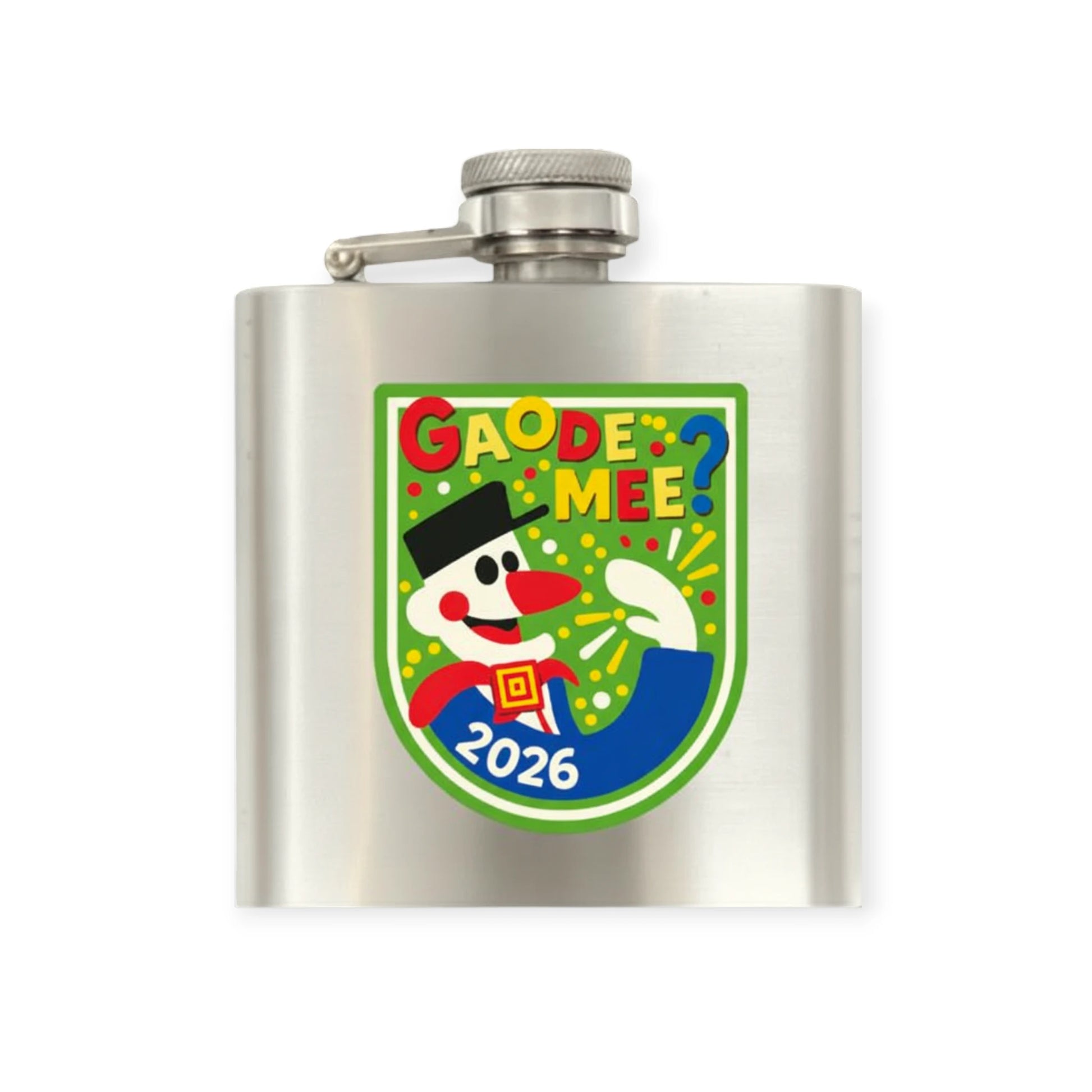 Met deze persoonlijke heupfles maak je jouw outfit helemaal af! Kies je eigen ontwerp – zoals onze stoere oma, vrolijke opa, of één van de andere originele illustraties – en creëer een unieke heupfles die perfect past bij jouw humor, stijl en carnavalssfeer.
